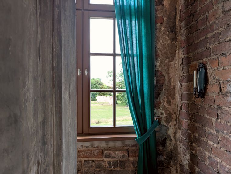 Die kleine Retirade im Haupttrakt ist ein besonderes Zeugnis, das den Alltag im Appartement der Fürstin Caroline Wilhelmine Sophie ein wenig beleuchtet. Aus statischen Gründen sollte dieser Bereich 2021 verschwinden. Durch energischen Widerspruch konnte dieses Relikt erhalten werden, das nun einen Wandblaker erhielt.