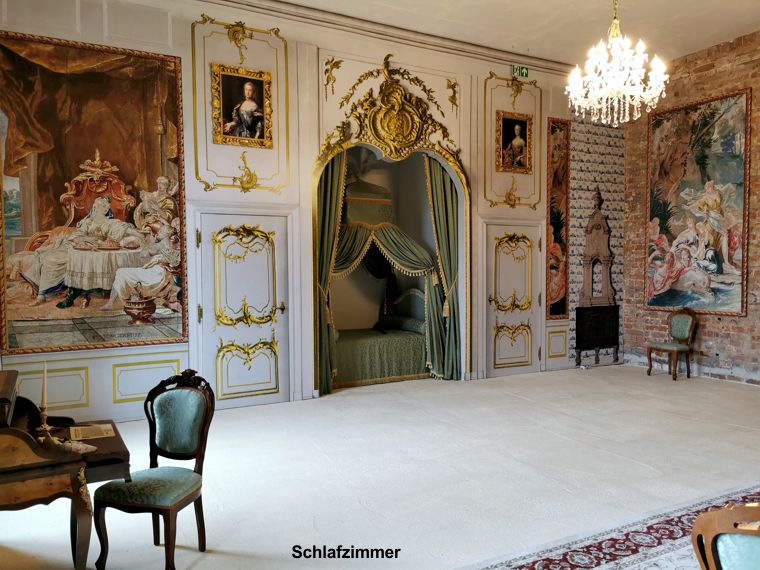 Nach etlichen Baumaßnahmen und umfangreichen Ausgestaltungen sind alle Zimmer wieder zu besichtigen. Zu den Repräsentationsräumen zählen das Erste und Zweite Fürstliche Vorzimmer, das Audienzgemach und das Grüne Kabinett. Zum privaten Bereich gehören die Nebenkammer, heute Porträtgalerie, das Bedientenaufwartungszimmer, das Wohnzimmer, das Schlafzimmer mit Alkoven und Retirade sowie das Zedernkabinett und das Gelbe Kabinett.
