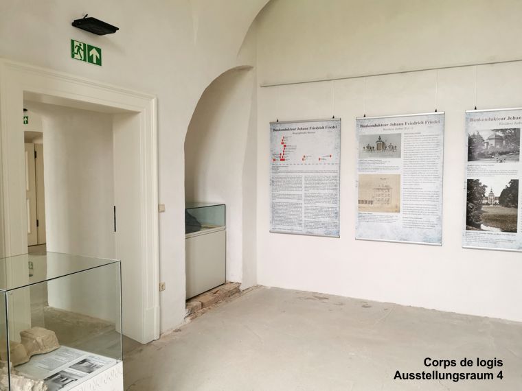 The Prussian building contractor Johann Friedrich Friedel, who worked in the construction office of the brilliant master builder Georg Wenzeslaus von Knobelsdorff and was familiar with his oeuvre, is the subject of the fourth room. Friedel completed the Zerbst three-winged complex with the construction of the eastern wing. A plan of Sanssouci Palace drawn and signed by him shows him to be a very good draughtsman.