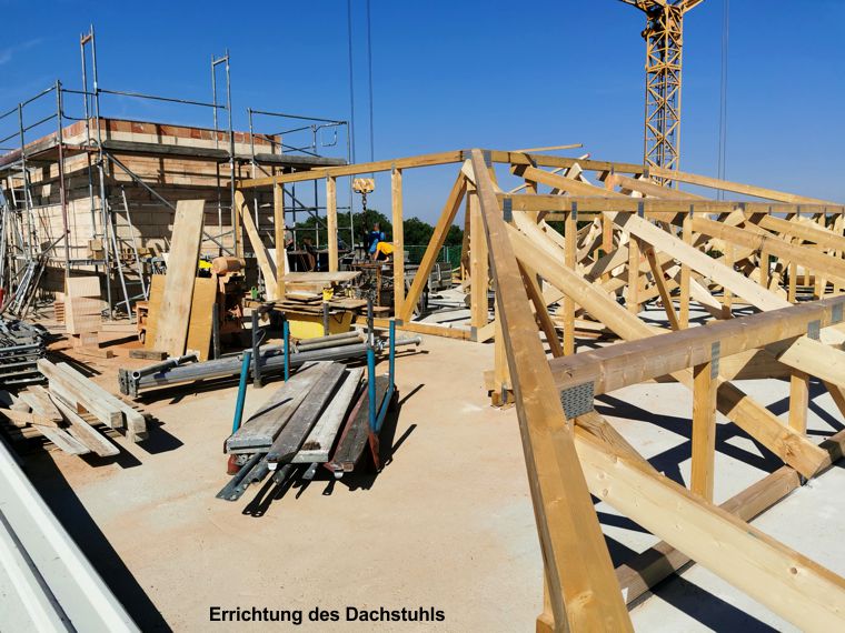 Zum Schutz der beiden Balkone vor weiterer Verwitterung und erneutem Eindringen von Nässe ins Mauerwerk erfolgte deren Abdeckung. Mittels Holzkonstruktionen wurden auf den ungleichmäßig hohen Balkonbereichen einheitliche, schräg geneigte Flächen geschaffen, um den optimalen Wasserablauf zu gewährleisten. Dann erhielten die Platten Blechabdeckungen.