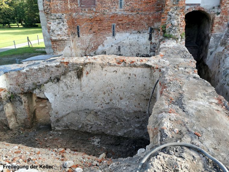 Im Haupttrakt des Schlosses haben sich trotz der schweren Zerstörung von 1945 und der sich anschließenden, über Jahrzehnte währenden dramatischen Substanzverluste durch Wandalismus und Witterungseinflüsse zwei große Gewölbe erhalten. Die direkt übereinander gelegenen Gewölbe stammen aus der Zeit um 1690 und haben eine Grundfläche von je ca. 80 Quadratmetern.