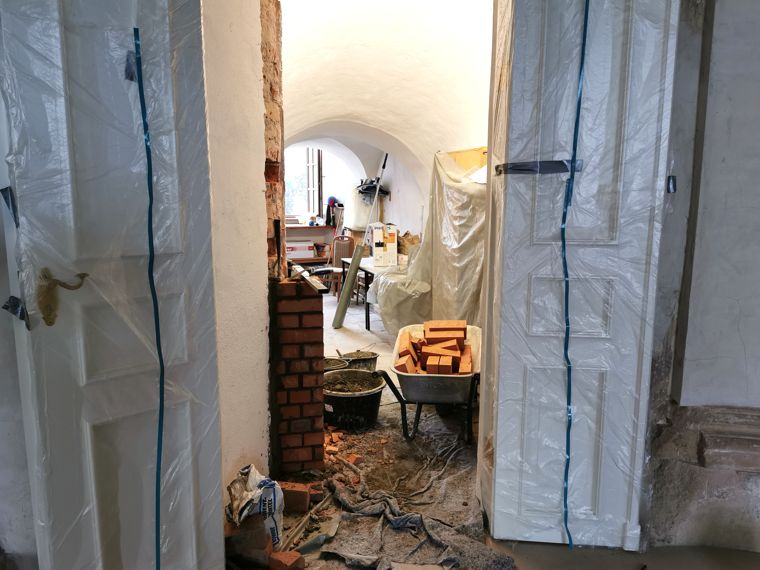 Maurerarbeiten in den ehemaligen Räumen Katharinas