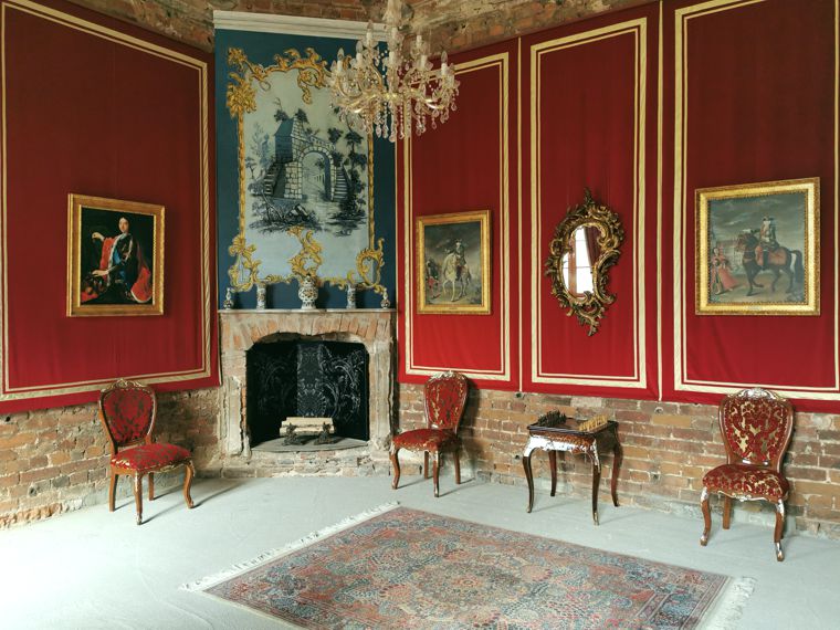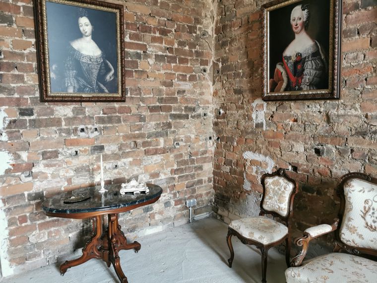 Mit der Zerstörung des Schlosses 1945 wurden die Räume, die die Zarin Katharina II. in ihrer Jugend bewohnte, komplett vernichtet. Die Decken und die Zwischenwände existierten nicht mehr. Nach dem Einzug des neuen Fußbodens werden die Zwischenwände und die Türöffnungen an originaler Stelle rekonstruiert.
