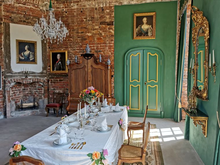Mehr als 77 Jahre nach der völligen Zerstörung der ehemaligen Jugendzimmer der nachmaligen Zarin Katharina II. sind die Räume nach Abschluss des Großprojektes wieder begehbar. Ein großes Banner mit dem Antlitz der Zarin ziert bereits das große Eckzimmer. Die Ausstellungskonzeption und deren Umsetzung sind in Arbeit.
