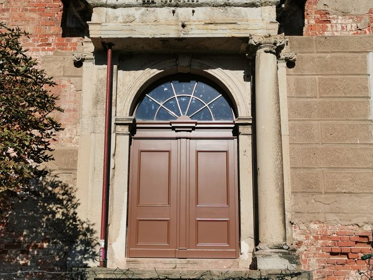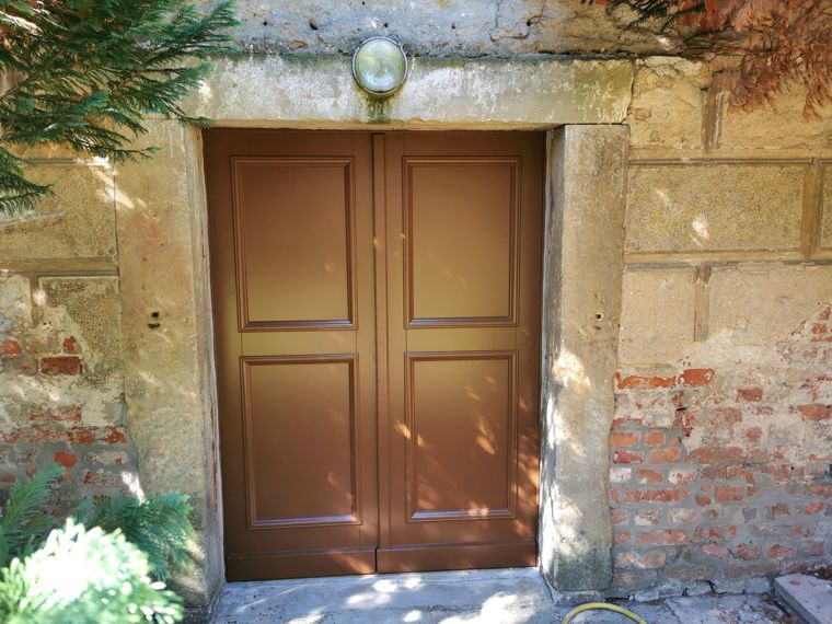Neue Doppelflügeltür im hofseitigen Mittelrisalit