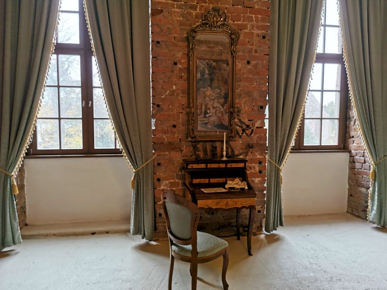 Das Schlafzimmer der Mutter der Zarin Katharina II., Fürstin Johanna Elisabeth, das ihr auch als Wohnzimmer diente, war überaus kostbar eingerichtet. Dazu zählte auch eine Vielzahl edler Möbel. In Anlehnung an das historische Schlossinventar wurde nun ein Damenschreibtisch angeschafft, der ab 2023 zu sehen ist.